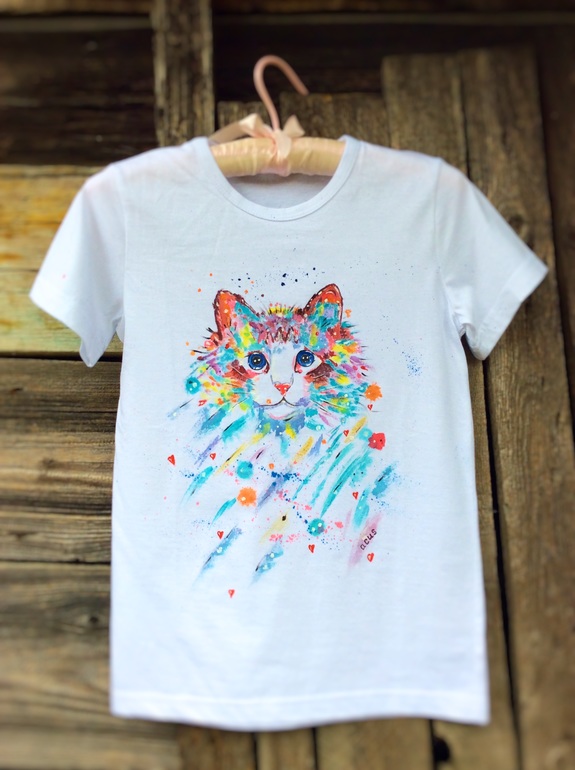 Радужный котейка для яркого лета. Роспись по ткани стойкими безопасными красками. Пять часов моей работы и вы неотразимы 😍🔥💋