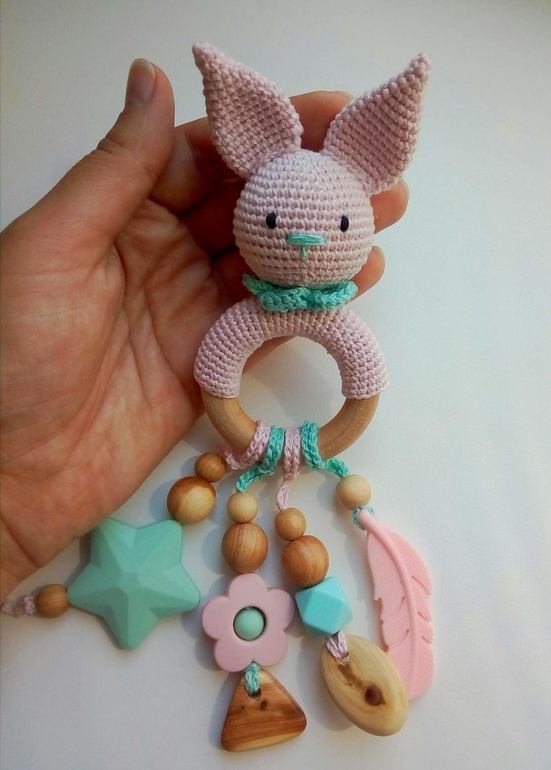 Подарки, игрушки, погремушки для новорожденных.Это не первый мой зайка погремушка&грызунок. Приятно когда ты делала кому-то уже игрушку а спустя год-два тебе пишут "а нам еще надо такую же для племянницы\крестницы\ребенка подружки" потому что у нас это была любимая игрушка долгое время. Востребованность твоей работы приносит огромное моральное удовлетворение.