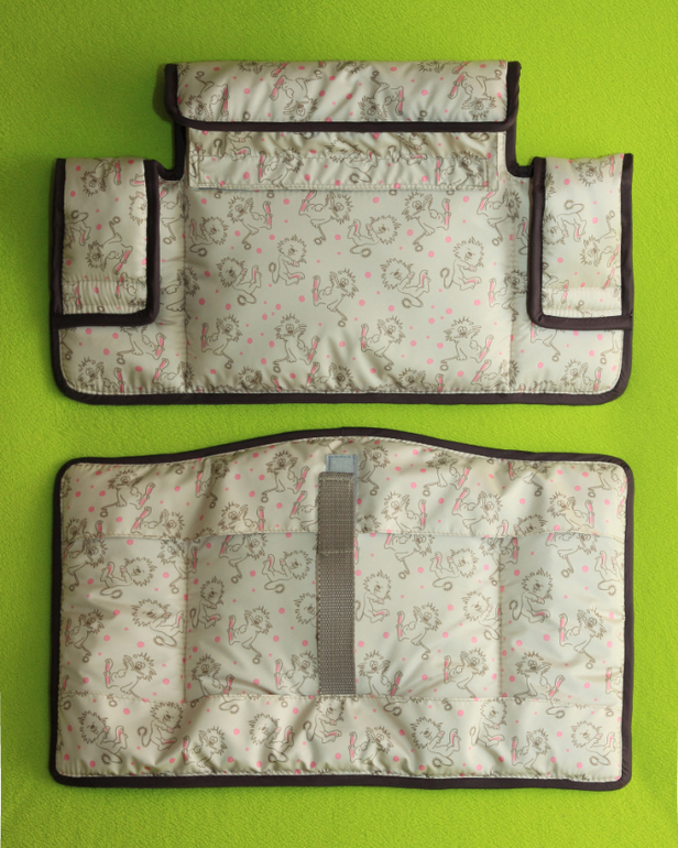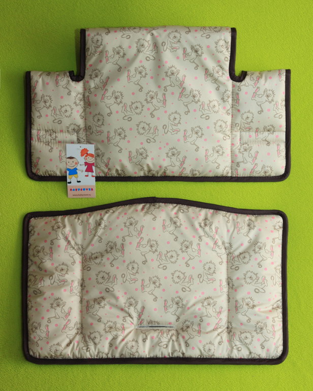 2. Чехол на растущий стульчик для кормления Конёк Горбунёк. Лицевая и изнаночная сторона плащёвая ткань с водонепроницаемым полимерным покрытием, наполнитель - холлофайбер плотностью 500 гр. Чехол состоит из отдельных спинки и сидушки, они крепятся на стуле с помощью контактной ленты (липучки) и стропы.
