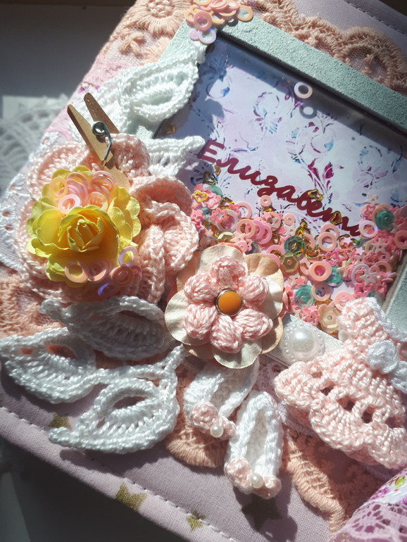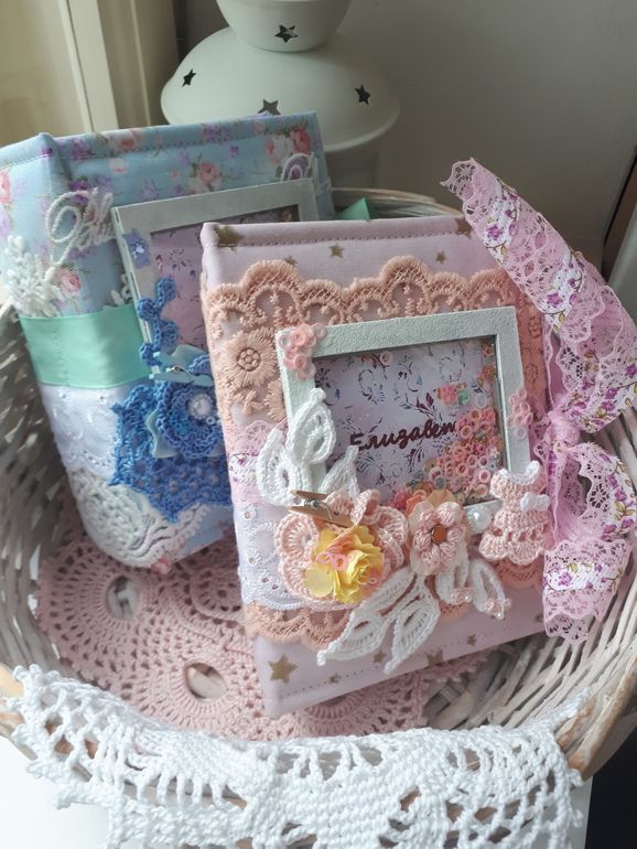 СкрапбукингДоброго утра! Сегодня у меня 2 альбомчика девочковых! Яркие малыши с файловым блоком на 96 фото. Обложка украшена искрящимися шейкерами и потрясающим вязаным декором!Далее много фото.