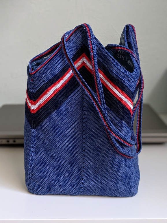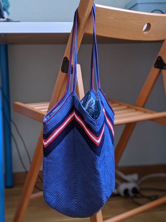 Вязание крючком (РАБОТЫ И СХЕМЫ)Захотелось мне связать для себя широко известную в узких кругах сумку. Внутрь пришила джинсовую подкладку с кармашками на застёжках.