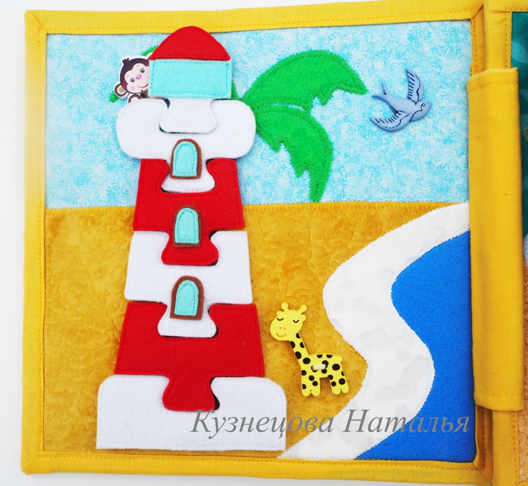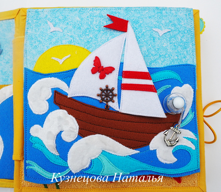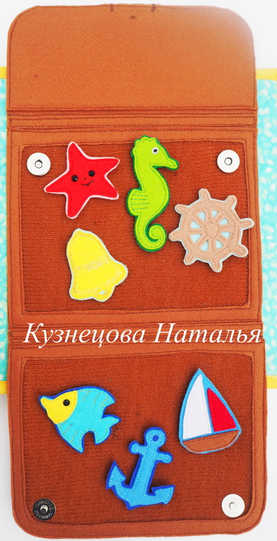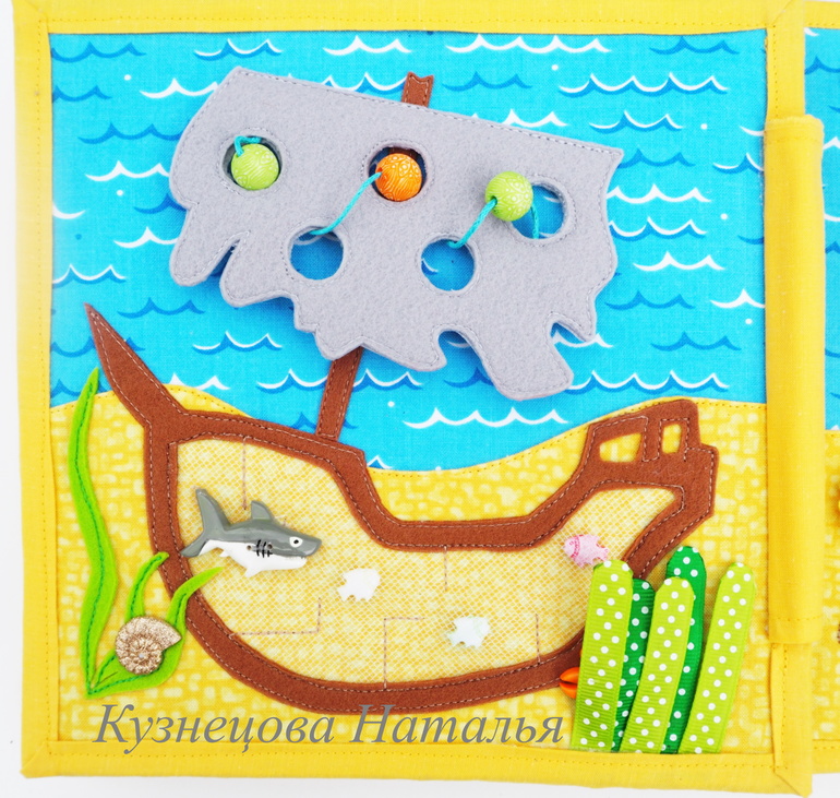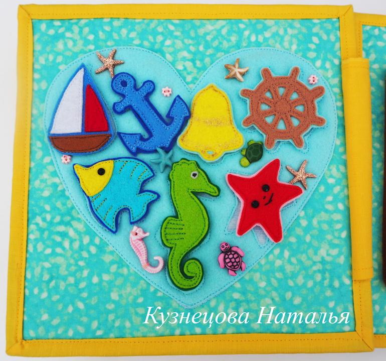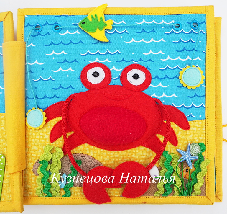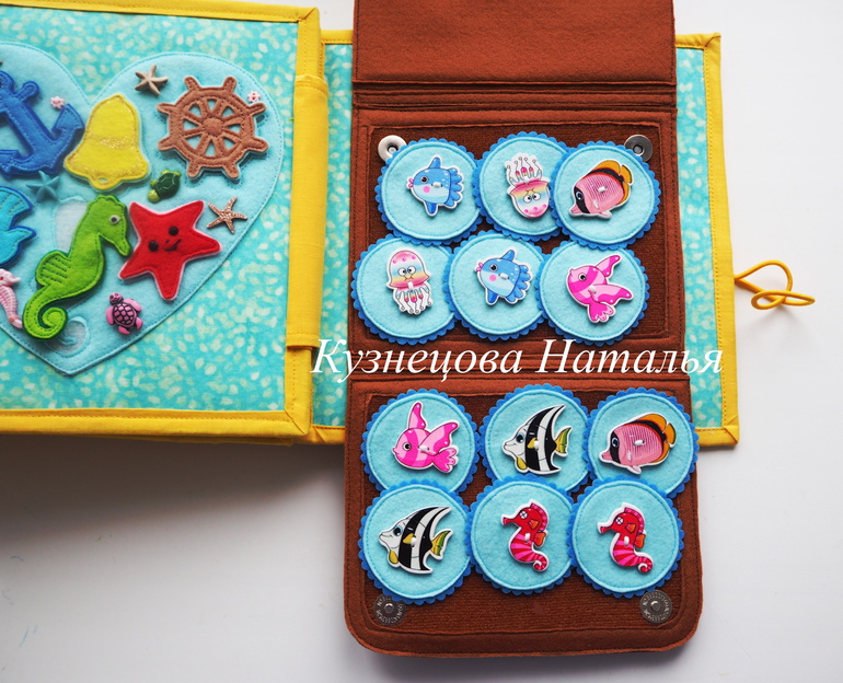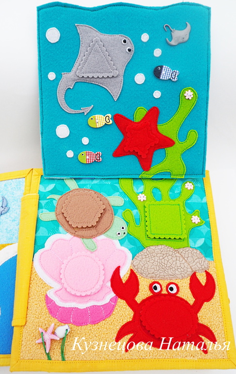 Развивающие игрушкиРазвивающая книга "Подводный мир" . Размер 20*20, сшита из Американского хлопка и Корейского фетра. Использованы тактильные ткани.