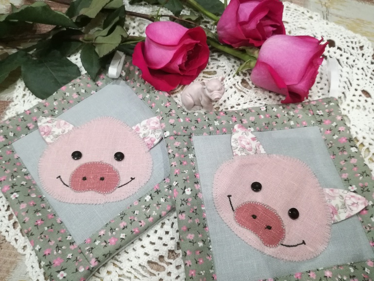 Свинка-слон!!! В состав слона входят две милые прихватки и фигурка свинки из природного камня ручной работы.