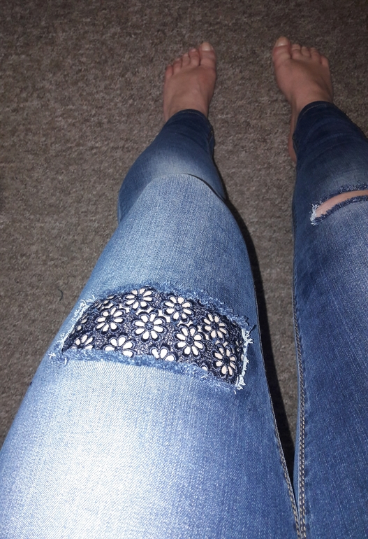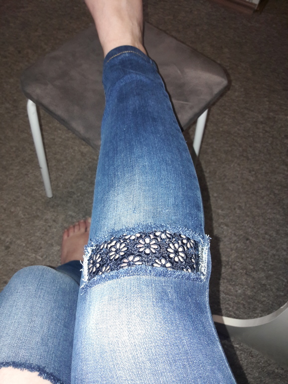 Видела вчерашний вариант, как то прошла мимо, а сегодняшний зацепил, клево, как будто так и было, выглядит стильно. Джинсы еще будут служить и служить, здорово!