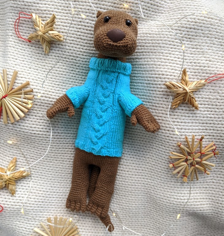 В осеннюю промозглую погоду так хочется тепла и уюта. Даже выдрам) Игрушка связана крючком из полухлопка, свитер связан спицами из хлопка. Глазки стеклянные, нос каучуковый на безопасном креплении, хвостик гнётся. Стоимость 2500 руб, пересылка по России бесплатно.