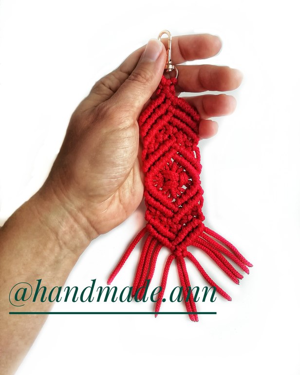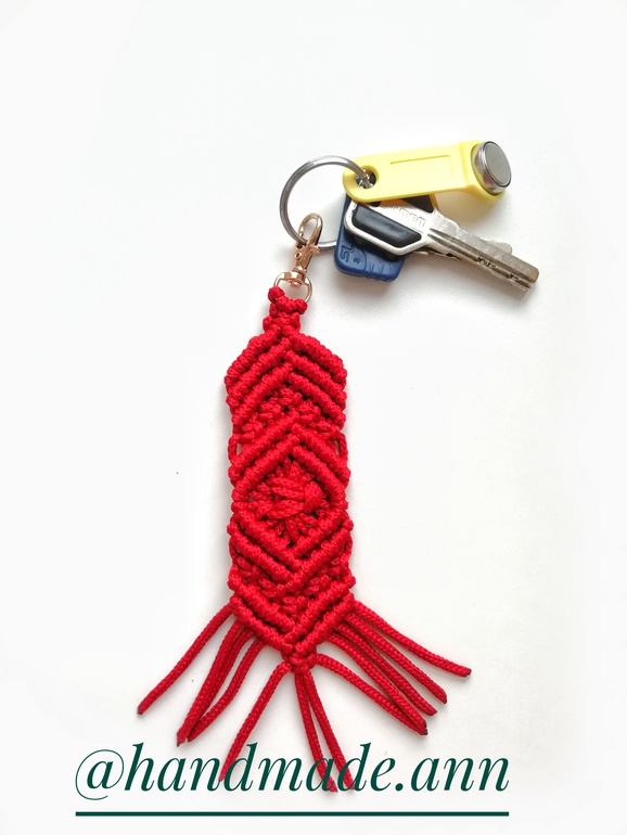 Украшения, бижутерия.Увлеклась в этом году плетением макраме. Решила коллегам и знакомым не покупать сувениры, а сделать их своими руками. Слава, интернету, нашла образцы брелоков и понеслось. Вот мой первый брелочек.