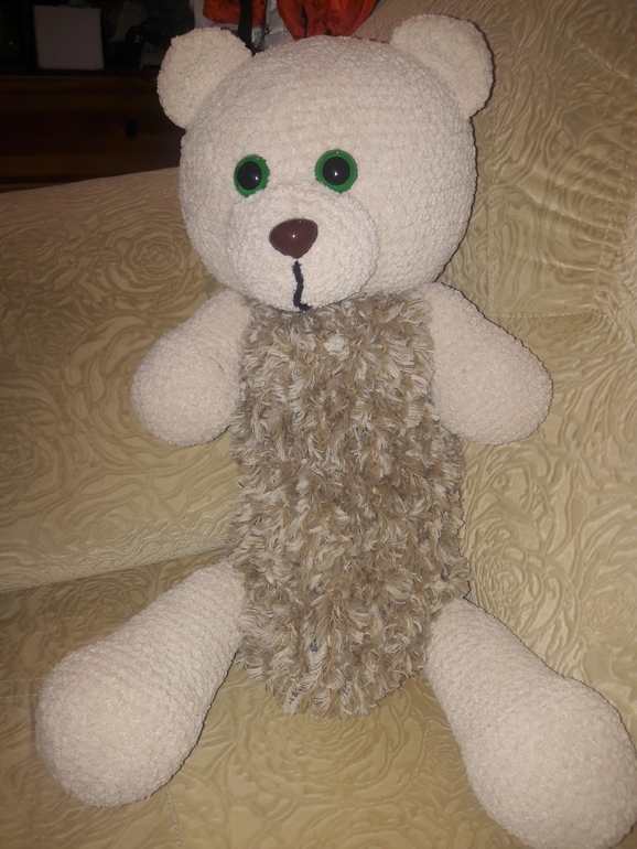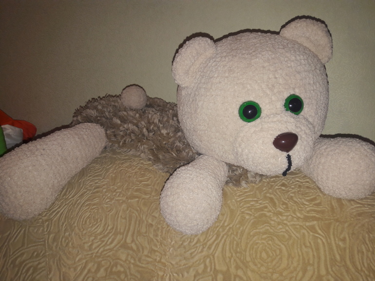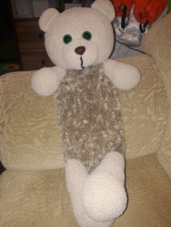 Понравилось мне вязать пижамницы. На этот раз для племянника. Пряжа Ализе софти плюс - 2,5 мотка, крючок 3,5. Для "тела" использовала ализе пуффи фур - 1 моток
