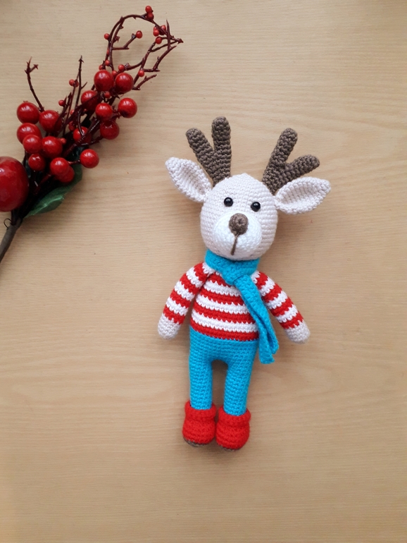 Амигуруми (вязаные игрушки)Осень почти на исходе, так что уже пора готовиться к Новому году! Представляю вам мои новогодние игрушки (всего 5 фото):