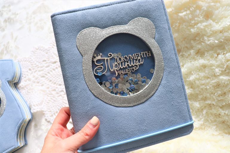 СкрапбукингПривет! Остался кусочек нежно-голубой замши после изготовления альбома - бодика и решила сделать папку для документов