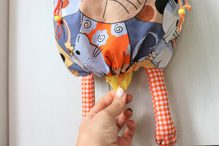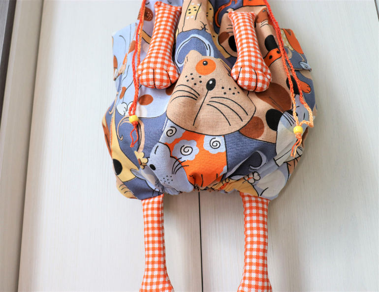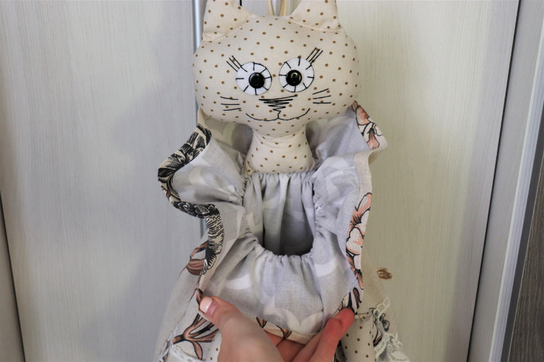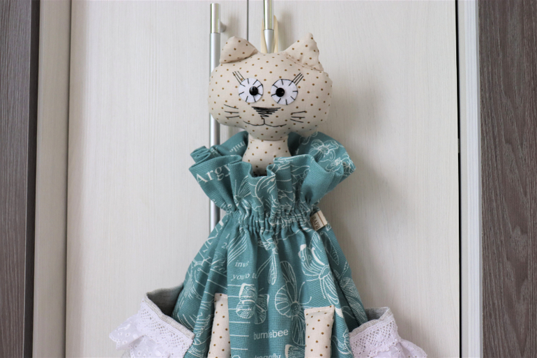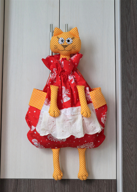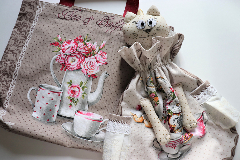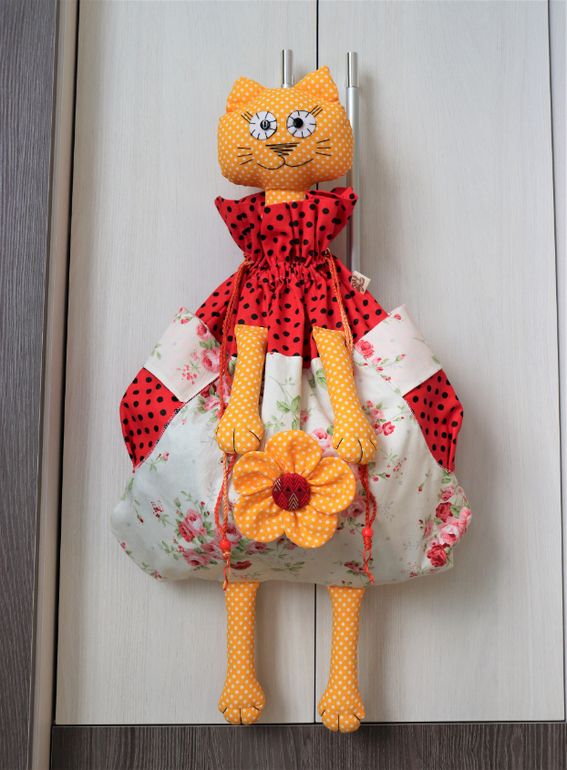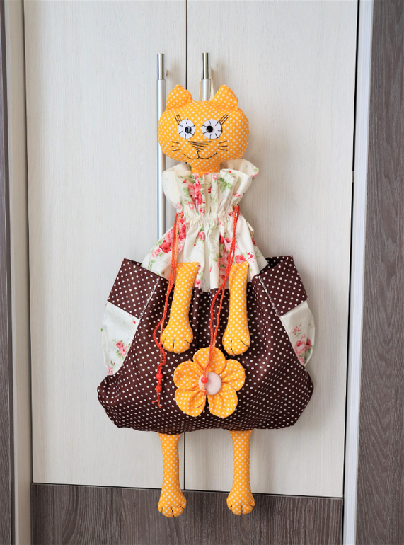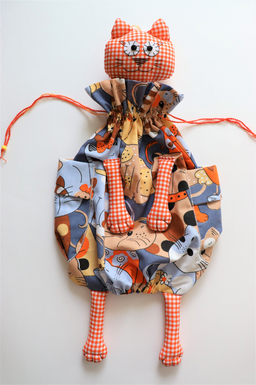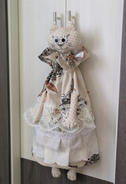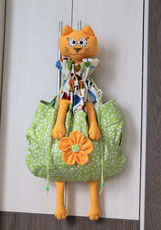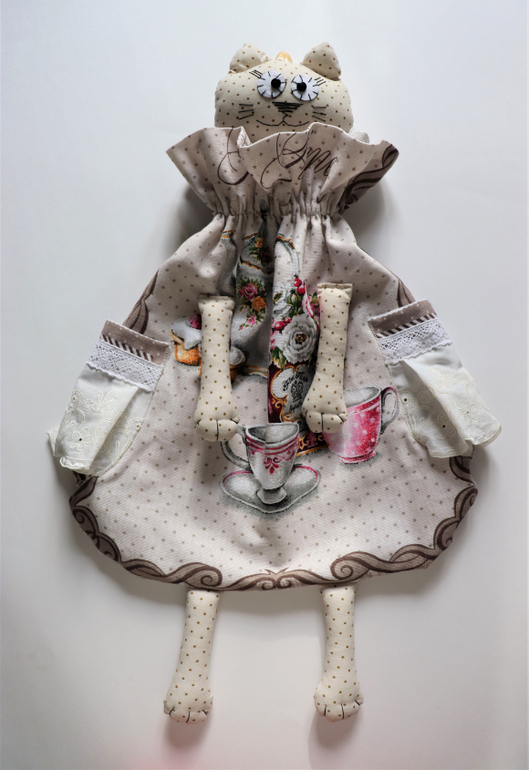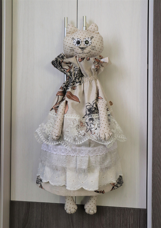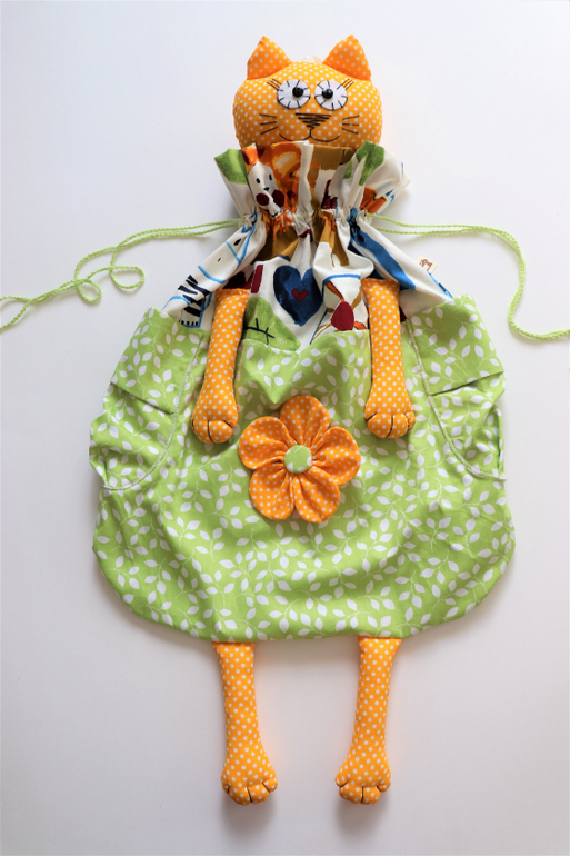 эта кошечка пошита из рогожки - ткань очень похожа на лен, внутри хлопковый подклад