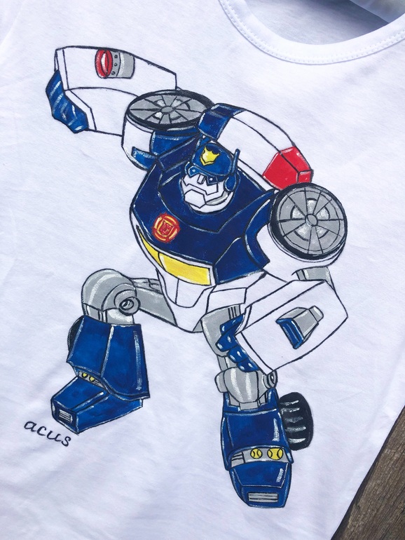 Футболочка с рисунком, выполненным стойкими красками в подарок для замечательного мальчика на 🎄. Мамы мальчиков, признавайтесь, что это за робот? Я совсем не разбираюсь🤷♀️😂