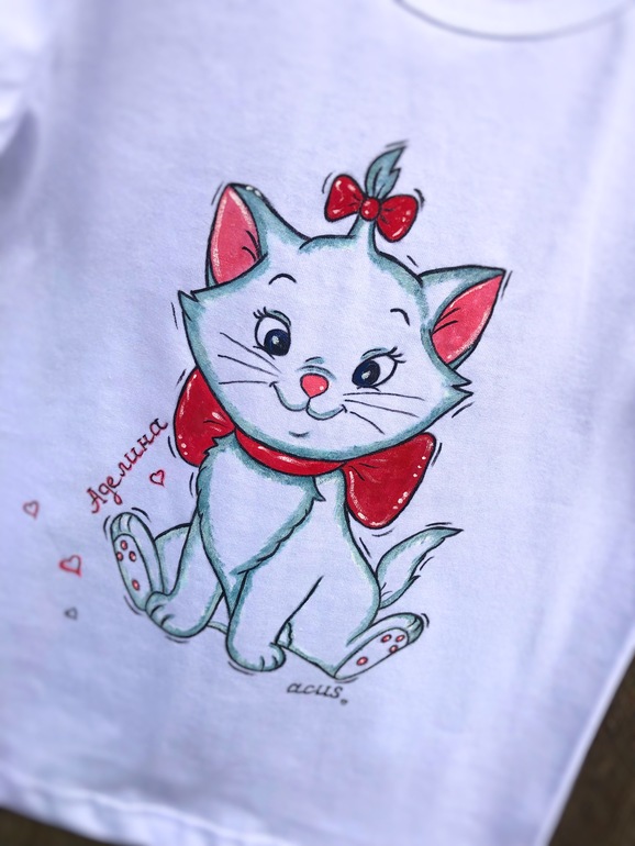 И снова Мери, маленькая героиня мультфильма «Коты Аристократы». Роспись по ткани стойкими красками.