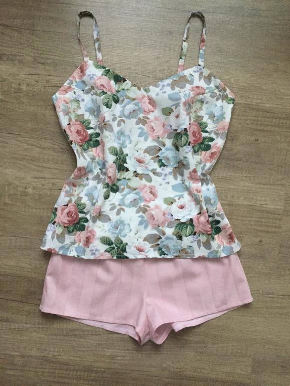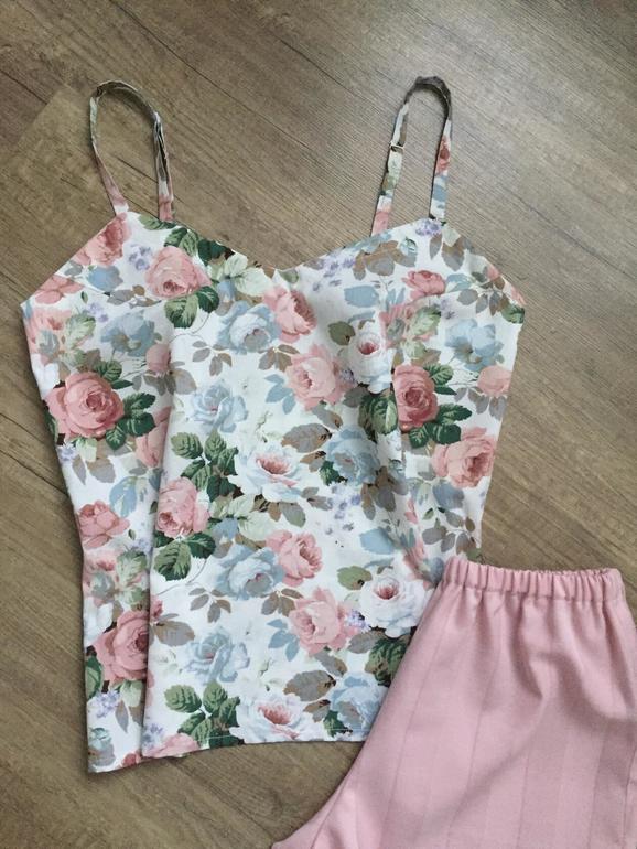 Очередная пижама готова! Я влюбилась в эту ткань с розочками). Лямки регулируются.Ткань-100% хлопок. Размер-42. Под cut еще фото).
