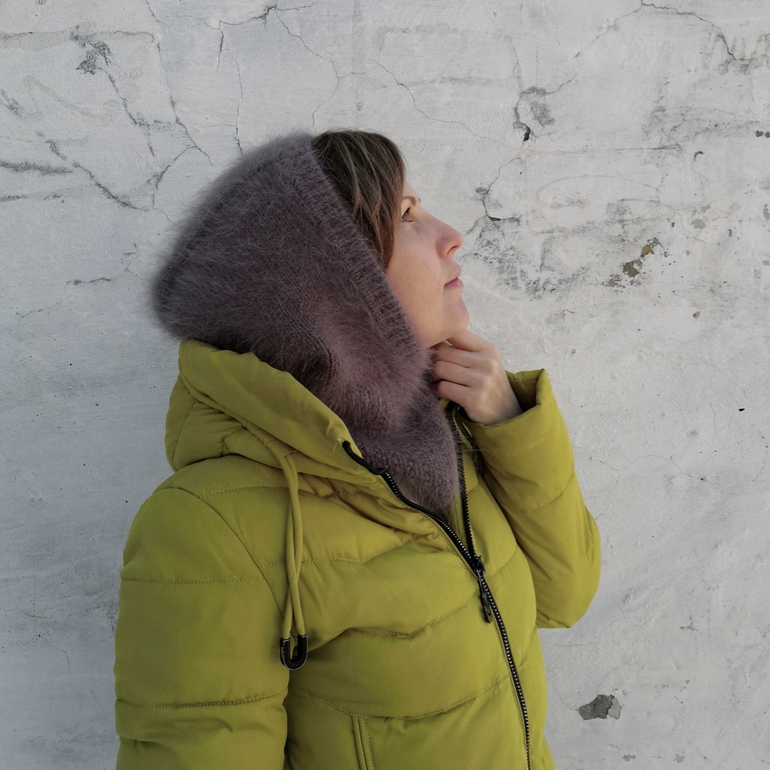Мой капор связан из пряжи пух норки. нужно 3 кл пряжи и спицы №5