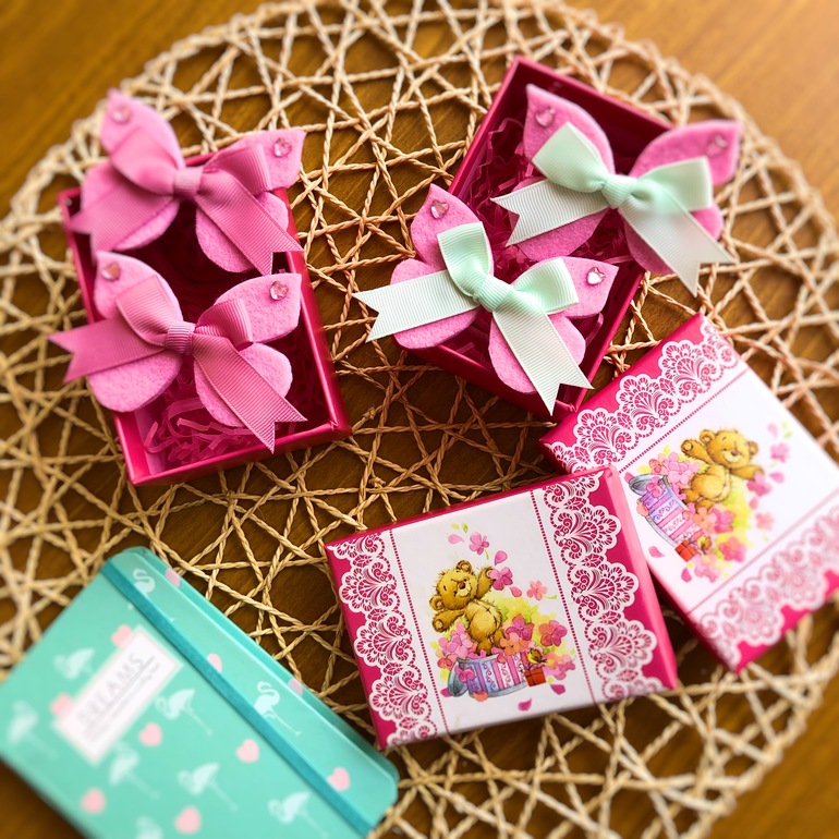 Маленькие презенты в честь будущего праздника от моего сына для девочек из садика💕Резиночки с бабочками🌸🌸🌸