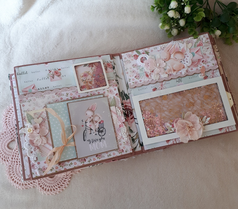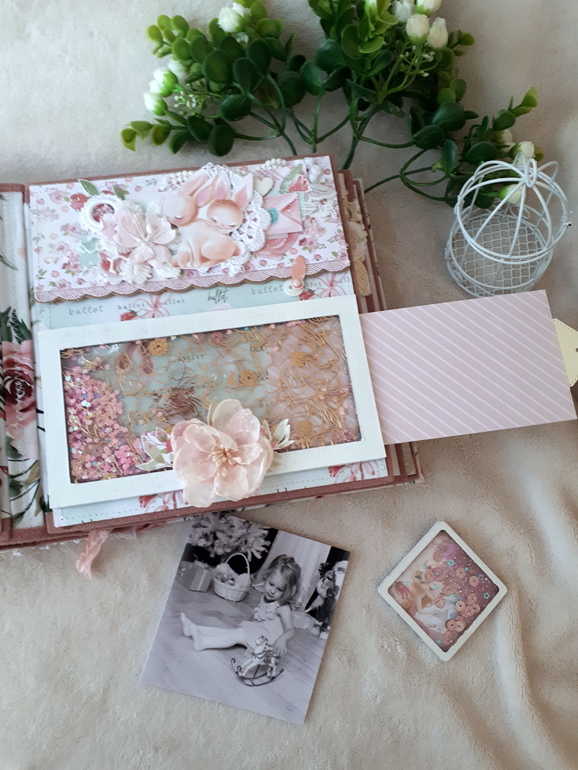 Четвертый разворот с карманом для доп фото и нежными шейкерами по углам)