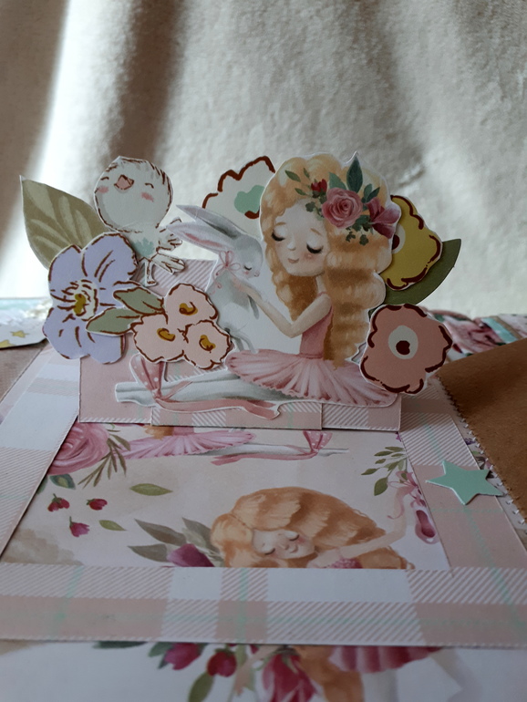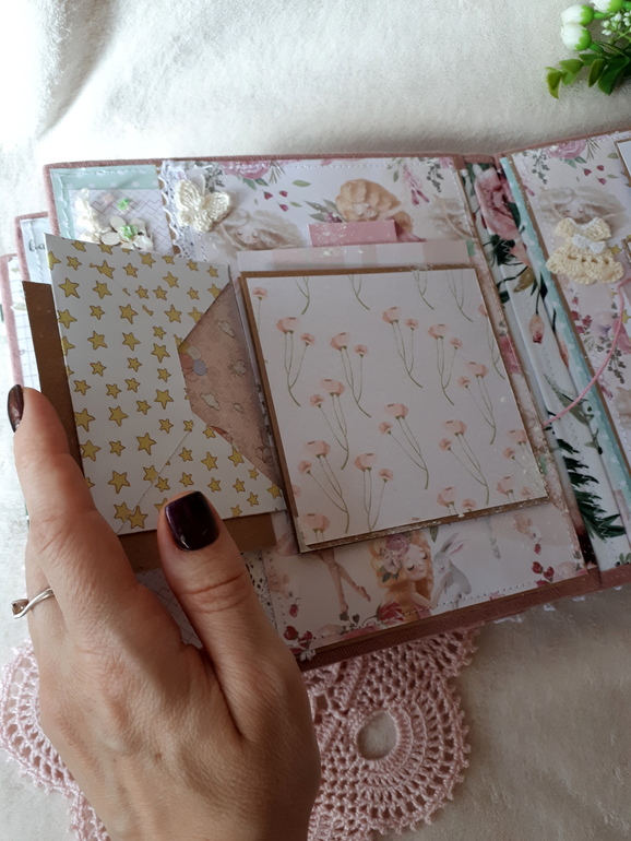 Третий разворот с кучей потайных карманов))) Слева карман для дополнительных снимков, так же так можно написать пожелание, есть мини-конвер, а под ним поп-ап констукция.