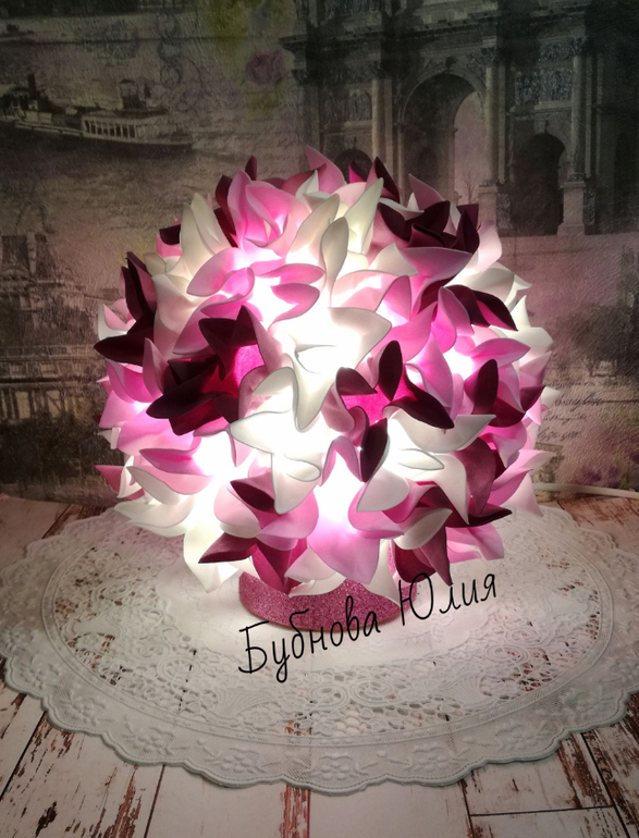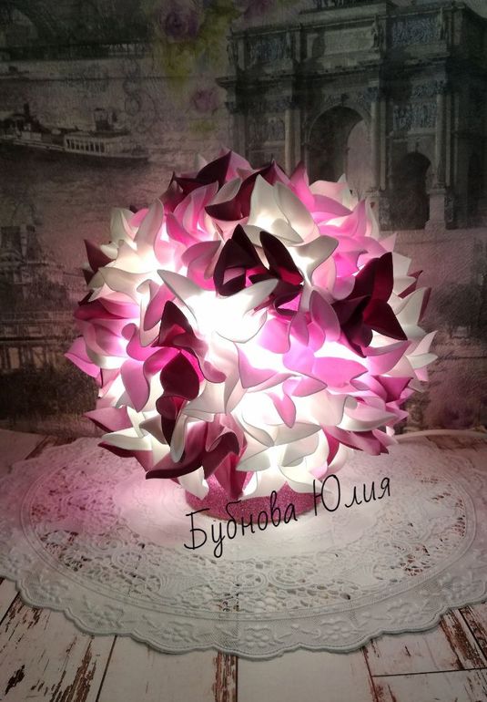 Цветы из ткани и форма. Канзаши. Украшения для волос.Светильник с "черничными бабочками".