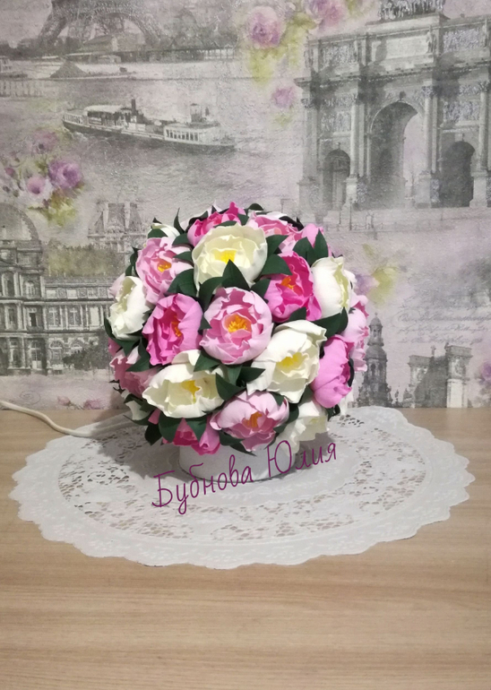 Еще в феврале мне хотелось сделать светильник с пионами. И вот только сейчас мне посчастливилось их сотворить.