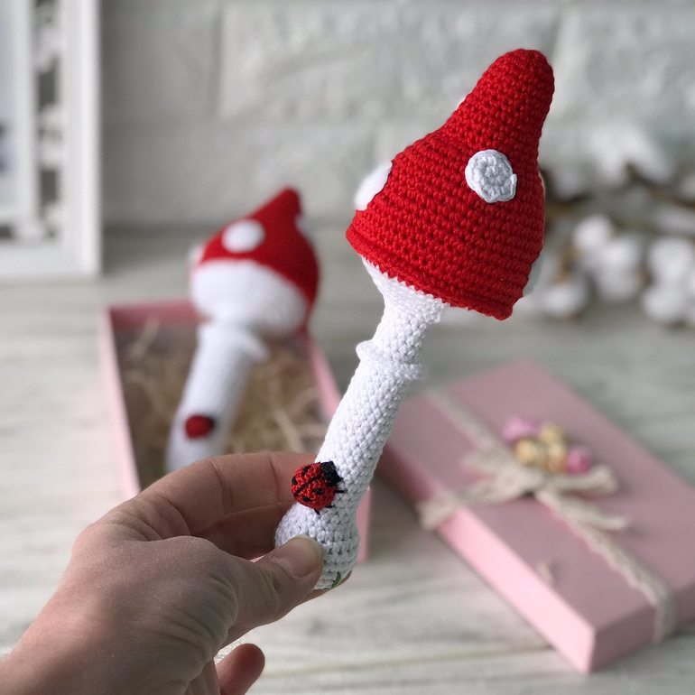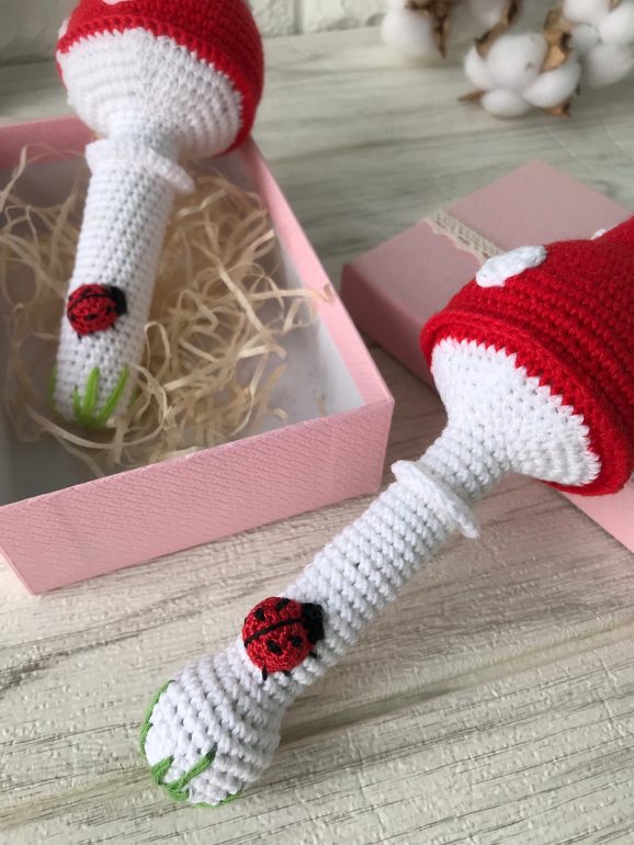 Погремушки связаны из 100% хлопка, наполнитель холофайбер.