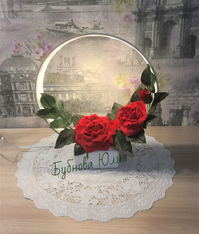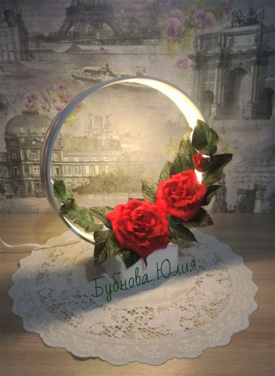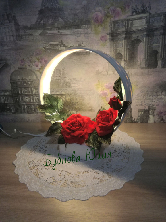 Цветы из ткани и форма. Канзаши. Украшения для волос.Этот светильник красив в любое время дня и ночи. Он прекрасно впишется в любой интерьер дома или офиса. Композицию на светильник можно подобрать любую.