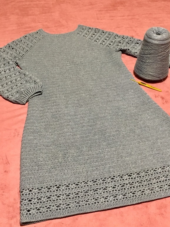 Вязать начала еще осенью, но довязав приблизительно до момента будто это кофта- остановилась. Стала задумываться: «А может сделать платьем...»