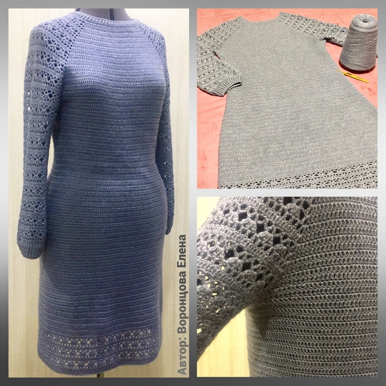 Платье связано регланом. Схему ажурной части прилагаю.