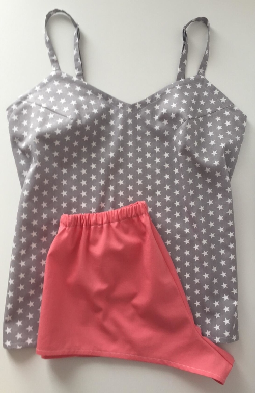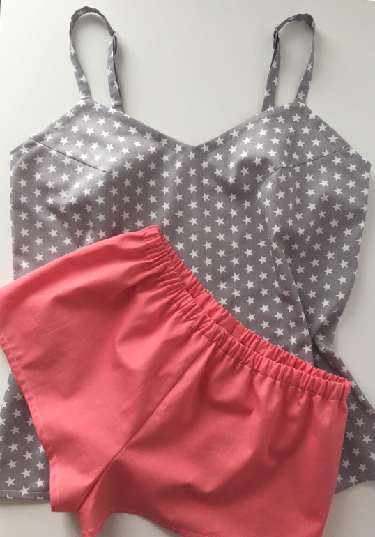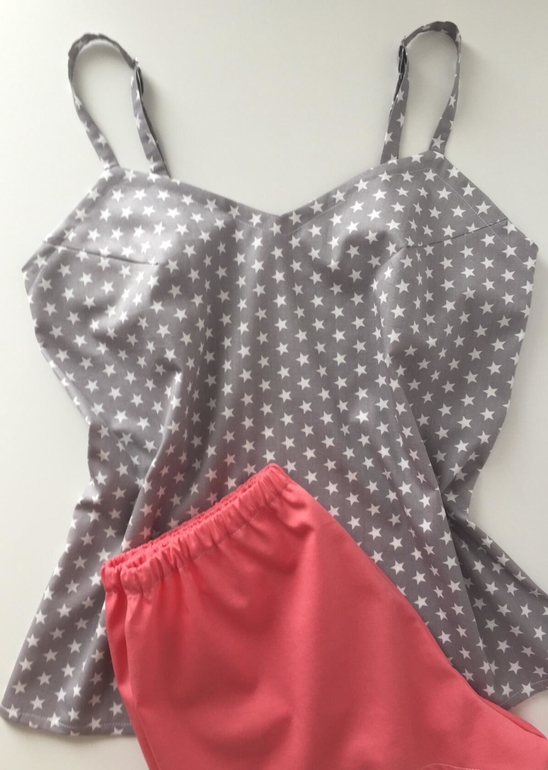 Шитье одежды, выкройки, ремонт одежды, шторы, швейные машины (уже приобретенные)Очередной комплект (топ+шорты). Ткань: сатин (хлопок 100%). Как же мне нравится это сочетание: звезды на сером и коралл). Под cut еще фотографии. Приятного просмотра и хорошего настроения!!!