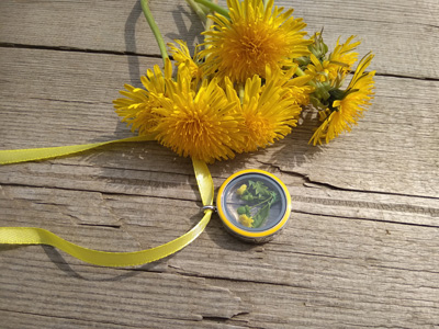 Украшения, бижутерия.Появился у меня пустой медальон с цветным ободком, и так захотелось туда поместить что-то такое же цветное-цветочное.. Сначала хотела нарциссы, но потом подумалось, что есть и более желтые создания...