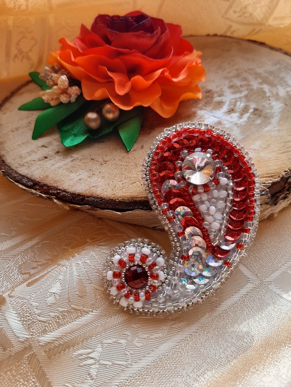 Брошь из бисера на основе из натуральной кожи. Добавлю пару роз на нужной вам основе в тон броши.(Этот слоник, возможно, будет отправлен с задержкой)