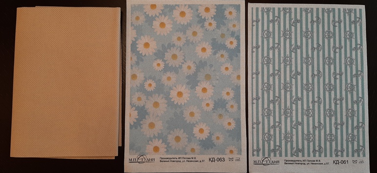 Канва для вышивания Аида 14 цвет бежевый 50×50см, две канвы с принтом каунт 18 размер примерно А4.