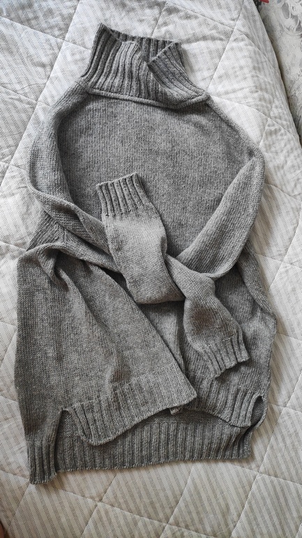 Вязание спицамиНе могу не поделиться с вами, он такой уютный получился. Фото без прикрас, только подсох после купания. Свитер связан из пряжи с кашемиром, ангорой и мериносом. Получился мягусик такой))) Размер 50-52, на все ушло грамм 400 пряжи.