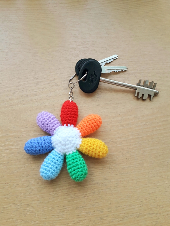 Брелок "Цветик-семицветик", связанный по моему собственному мастер-классу. Яркий и веселый!