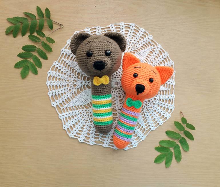 Комплект погремушек "Лесные зверята": мишка и лисёнок