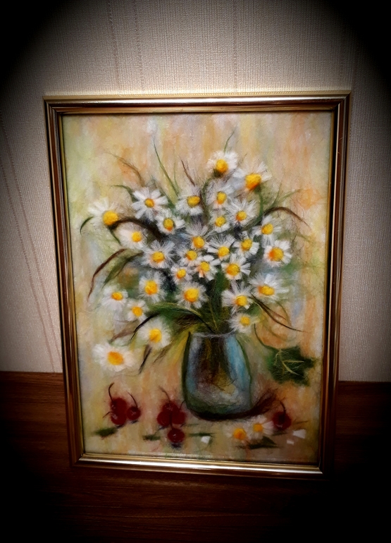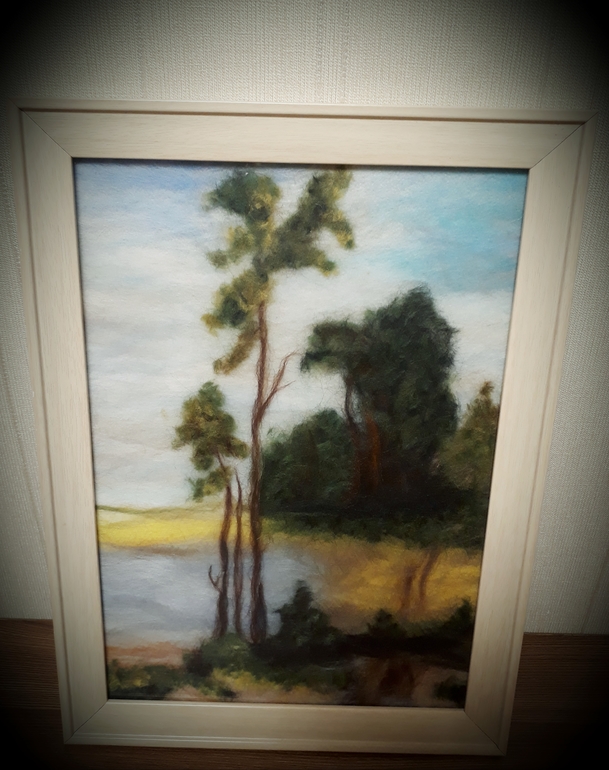с телефона не рассмотрела, а сейчас с ноута открыла картины побольше, я думала это масло, а вы делаете шерстью? интересно, но мне почему-то сами шерстинки не очень приятны, сейчас присмотрелась к картинам и поняла что напрягают темнокоричневые ветки - как-будто это волосы. Только не обижайтесь, это вот личный заскок. Мне нравится более абстрактное.