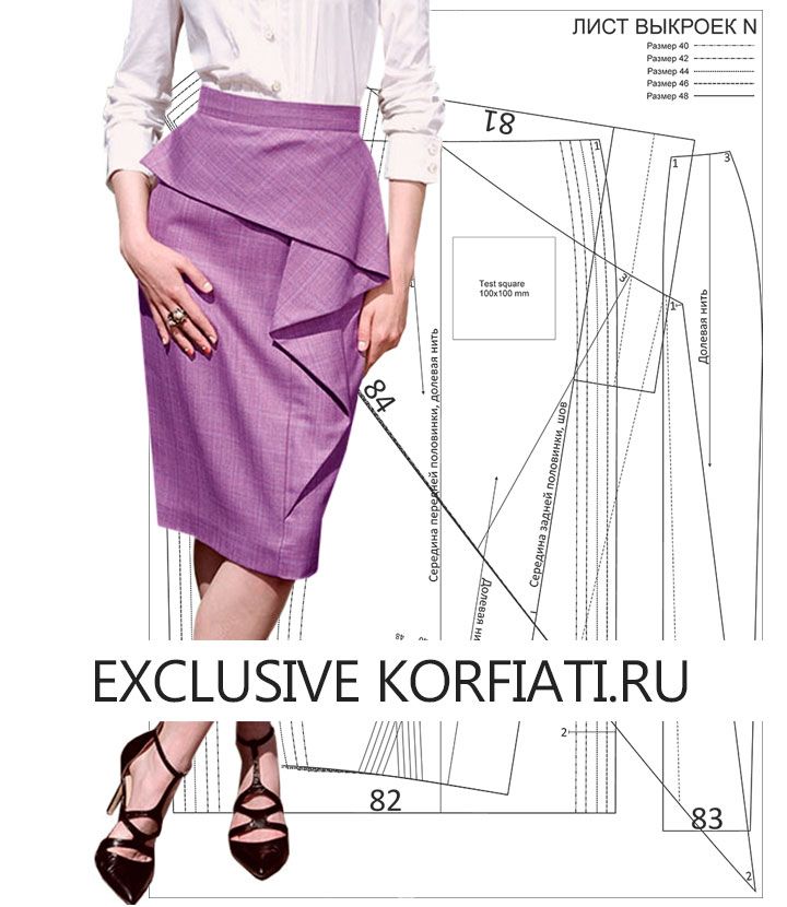 Готовая выкройка юбки с воланом на 5 размеров