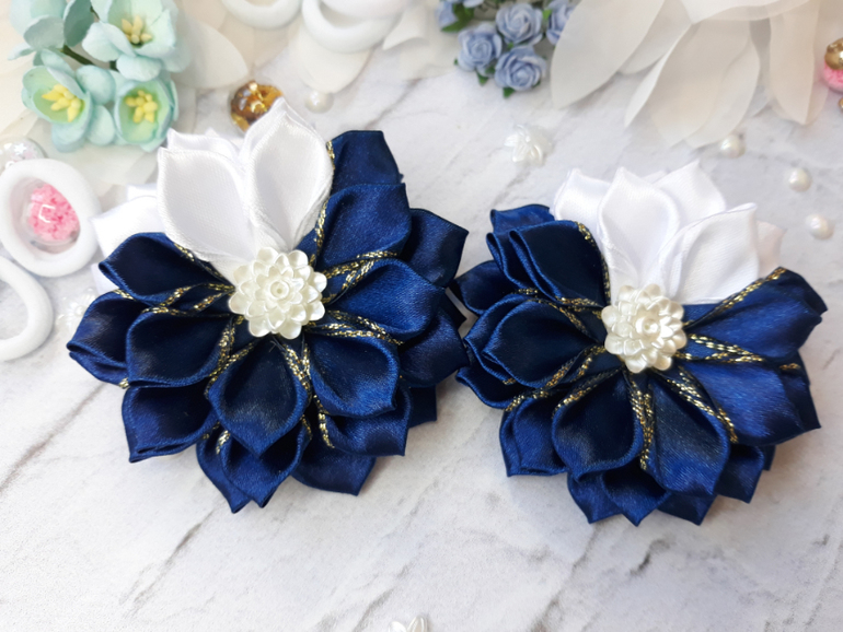Мой выбор пал на изделия в технике КАНЗАШИ. И тут я пропала. Одно за одним появлялись на свет новые украшения из лент.