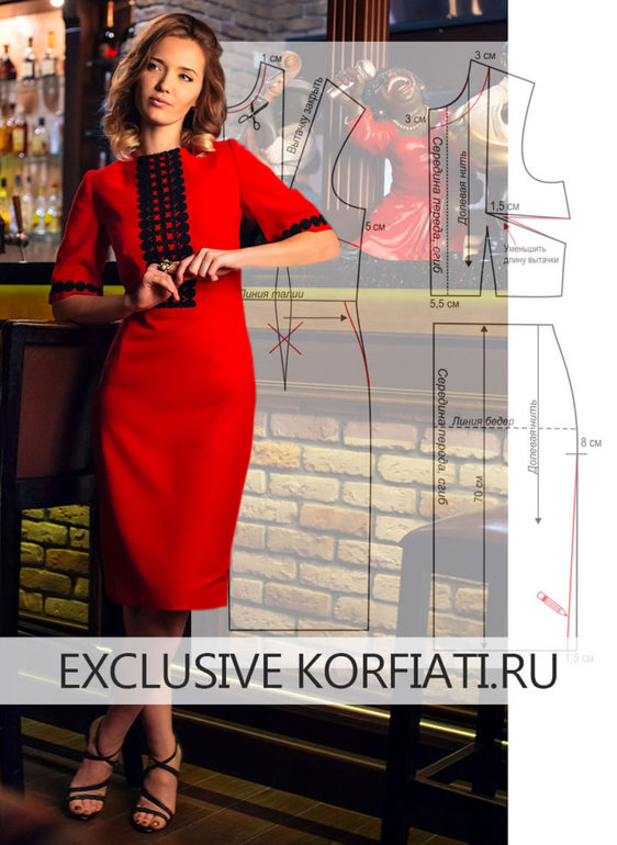 Платье, которое мы предлагаем вам сшить в нашем очередном уроке - классическая модель, которая никогда не выходит из моды! Изделие выполнено из добротной красной шерсти, а лиф и рукава декорированы полосками плотного ажурного кружева. В таком платье вы будете шикарно выглядеть и в театре, и на дружеском ужине в кругу друзей, а яркий цвет этой модели не позволит вам остаться незамеченной. Платье полностью посажено на эластичную подкладку, а чтобы не возникало дискомфорта при ходьбе, по спинке выполнен высокий разрез. Выкройка платья с короткими рукавами очень легко моделируется, и вы можете в этом убедиться.