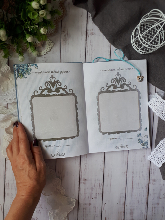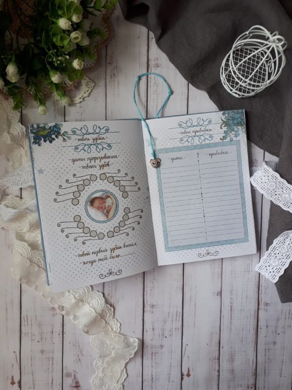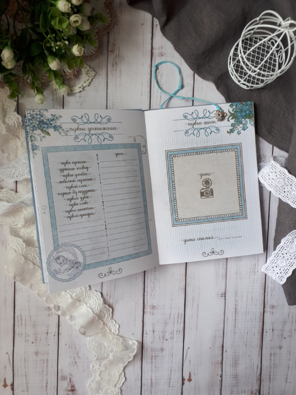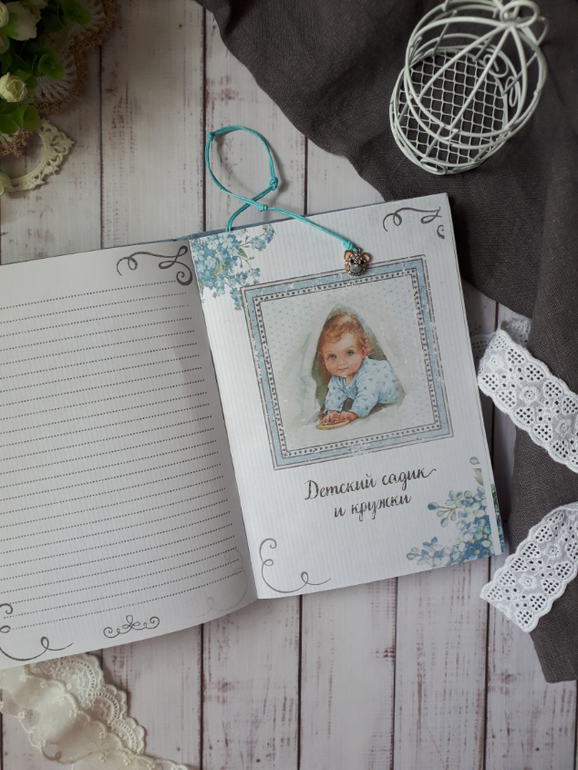 С момента ожидания чуда до школьных лет малыша. В одной книжечке целая история! Здесь можно хранить снимки узи, первые фото, метрику, различные графики роста и достижений, отпечатки малюсеньких ножек-ручек, фото маленьких мамы и папы, что бы видеть, на кого больше малыш похож, семейное древо, чтобы рассказать о бабушках-дедушках, записи на каждый месяц первого года и на каждый год от 1 до 7. Первый новый год и первый день рождения, крестины, смешные слова малыша, садик, школа...Можно вклеивать более 30 фото! Сохраните историю детства вашего малыша красиво.. бережно!