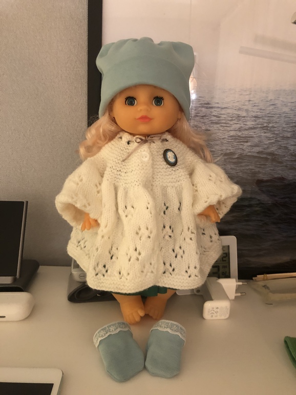Куколка теперь красиво стоит в спальне в садике, потому что играть ей жалко)