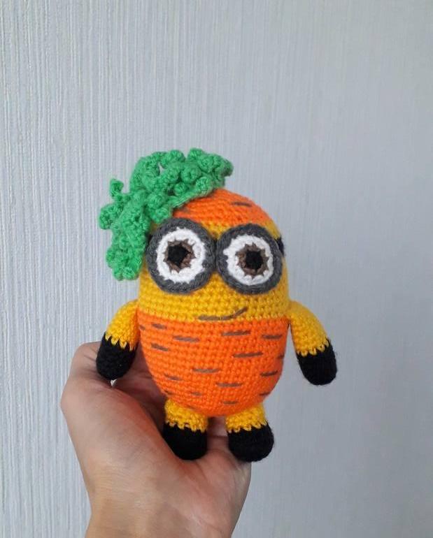 Миньон-морковка: весёлая и жизнерадостная. Одни её кудряшки меня влюбили с первого взгляда, и я непременно захотела связать такую себе.