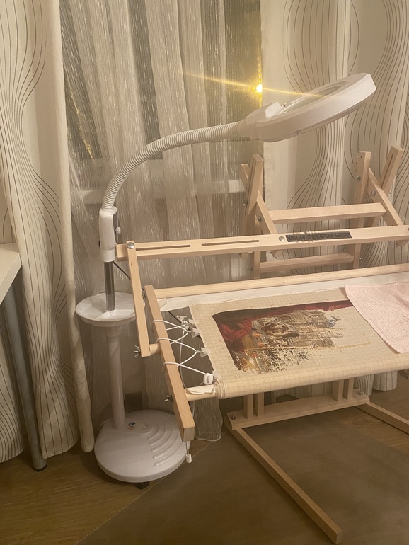 Мне не нравятся настольные варианты. За столом никто не вышивает. Это должна быть напольная версия или что-то крепящееся на струбцине. Вы посмотрите где сидит дочка, как наклоняется, как вышивает и сразу все поймёте.