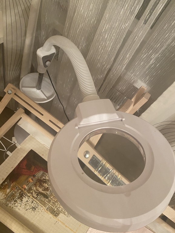Обязательно лампа!!! Если канва мелкая, то лупа с подсветкой. То свет обязателен и скорее Белый, чем желтый