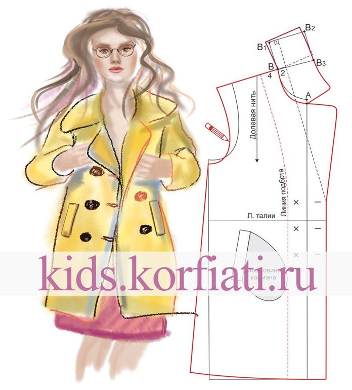 Выкройка двубортного пальто для девочки