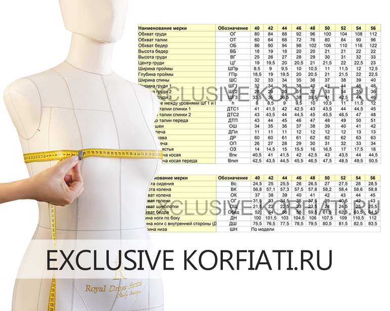 Сняв мерки с женской фигуры вы можете сравнить их с мерками, приведенными в таблицах ниже.