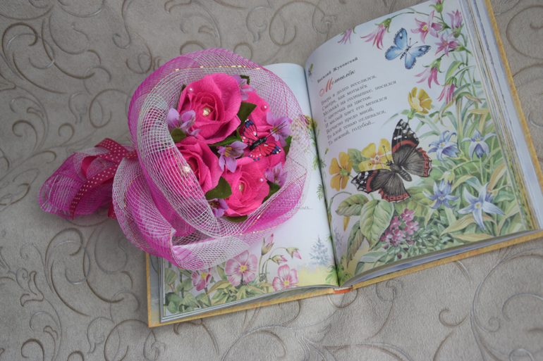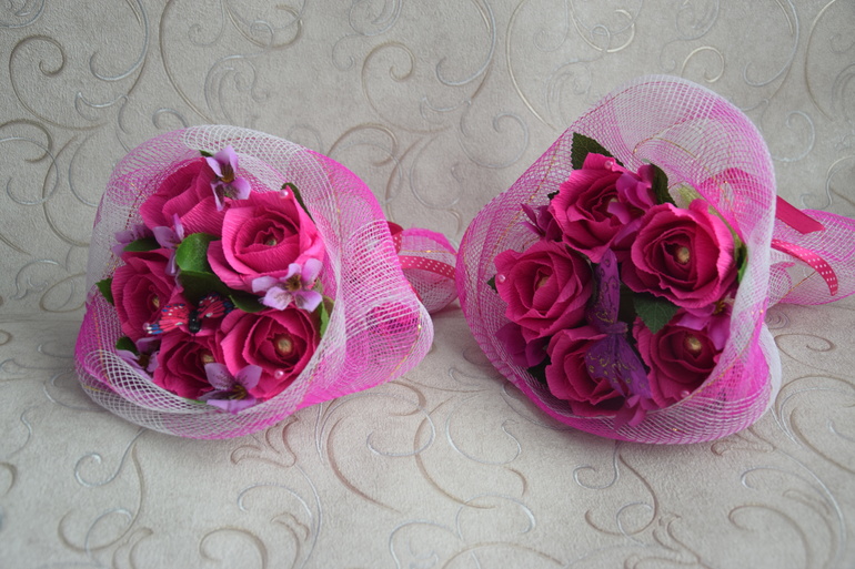 И ещё сделала букет близнец ярко-розовый для магазина. Хозяйка говорит спрашивают всё равно букеты, не часто, но бывает,но я уже год, наверное, в магазин ничего не делала. Совсем нет времени.