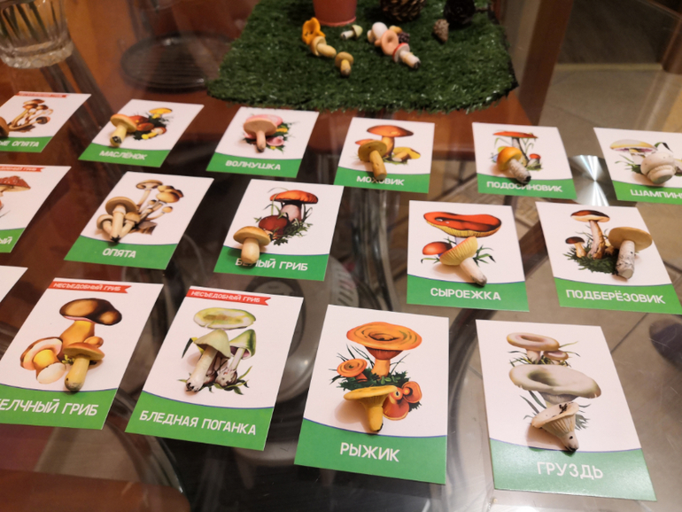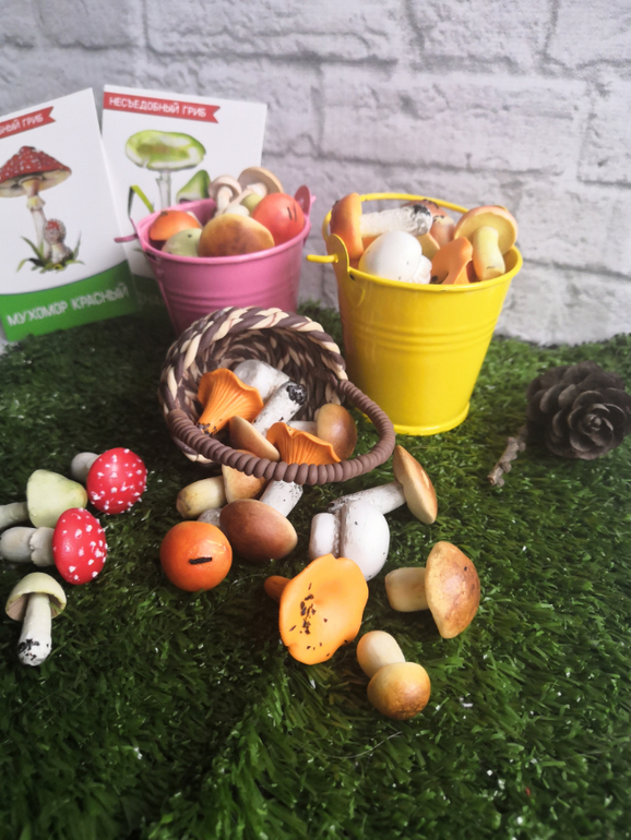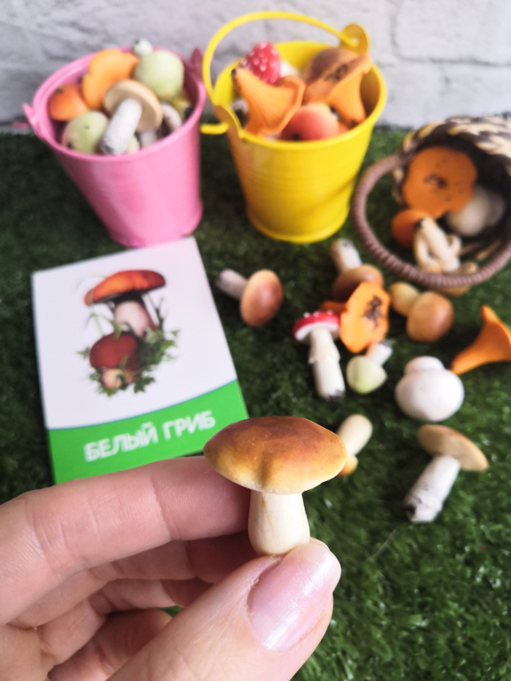 Я очень старалась, причём как минимум дважды- сначала слепить грибочки, чтобы они были узнаваемы и реалистичны, а затем выучила их сама и ребёнка научила