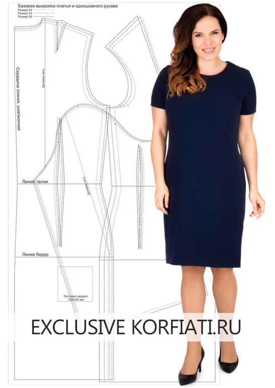 -Просто скачайте! Готовая базовая выкройка платья 52-56 размеров
