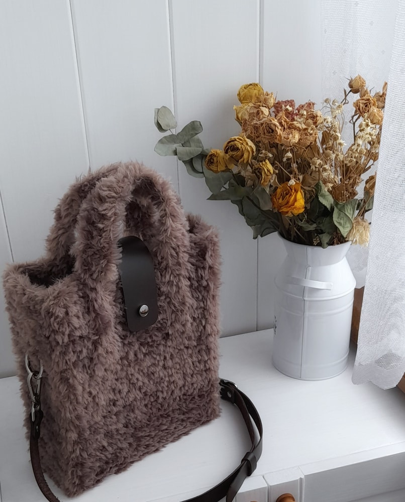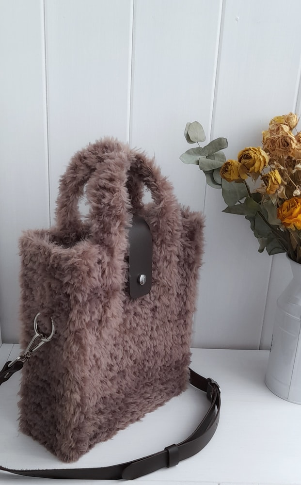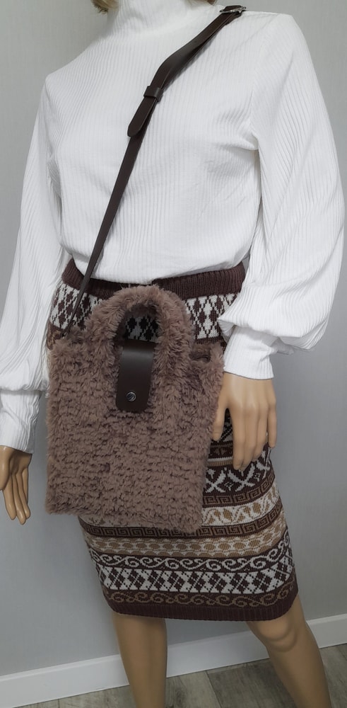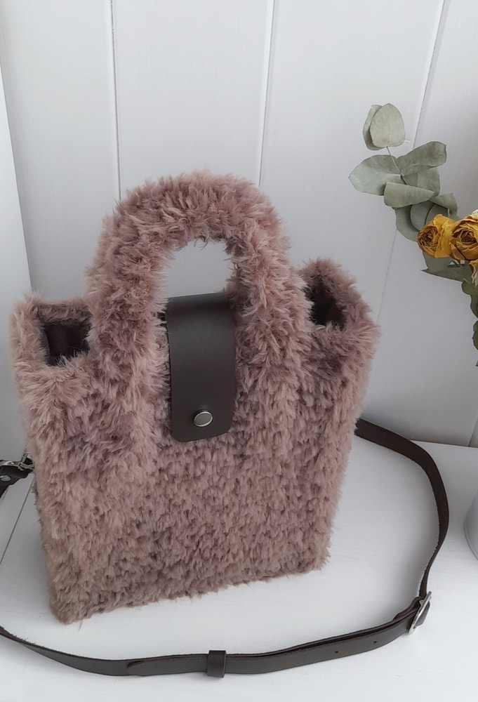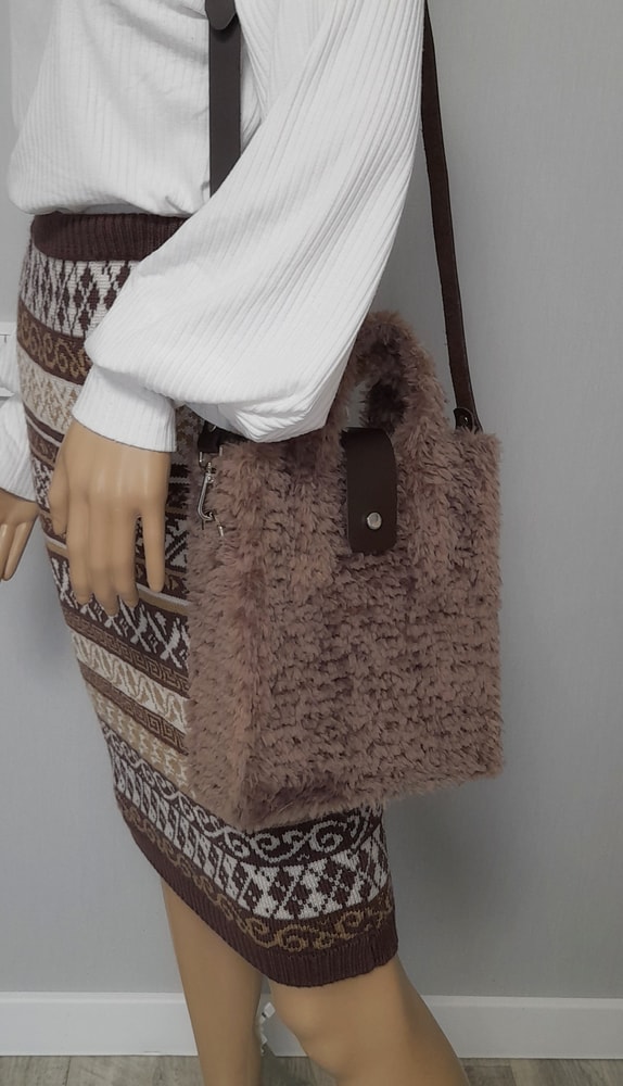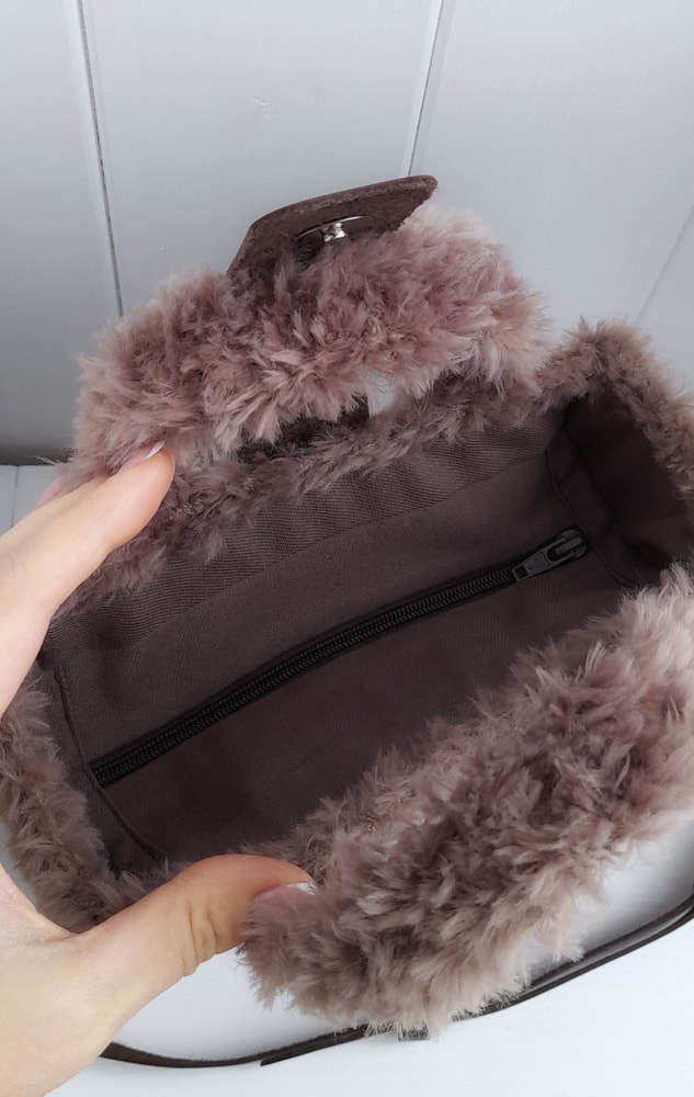 Вязание крючком (РАБОТЫ И СХЕМЫ)Настоящий эксклюзив! Сумочка связана из пушистой пряжи, хорошо держит форму за счёт каркаса. Внутри подклад с кармашком. Застегивается на молнию и кнопку. Фурнитура из натуральной кожи