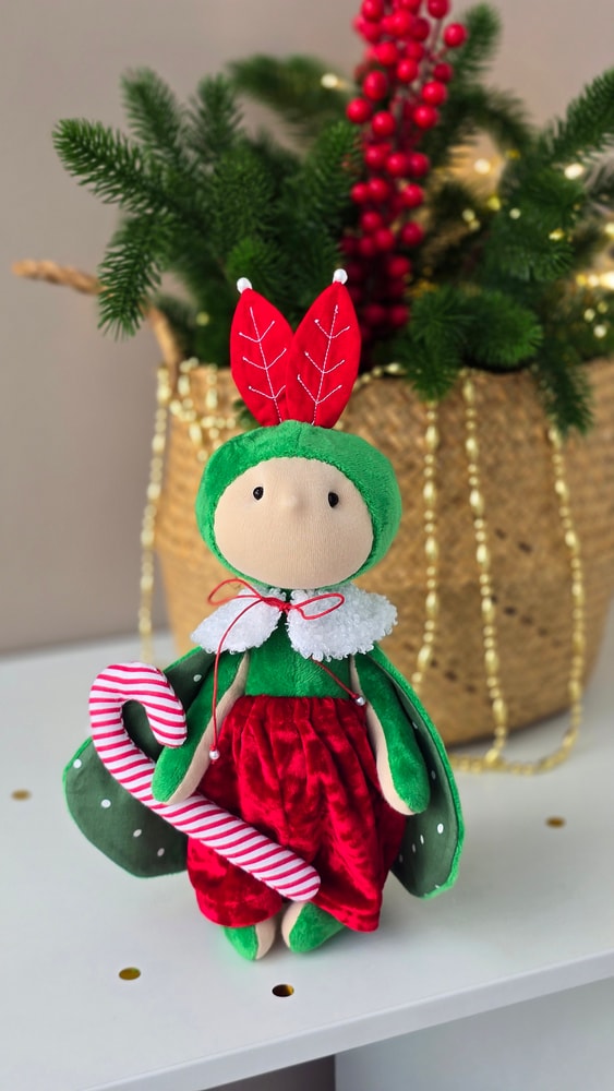 Рост мотылька 24 см без учёта усиков, с усиками 29 см. Вся одежда и конфета съемные, умеет самостоятельно стоять и сидеть